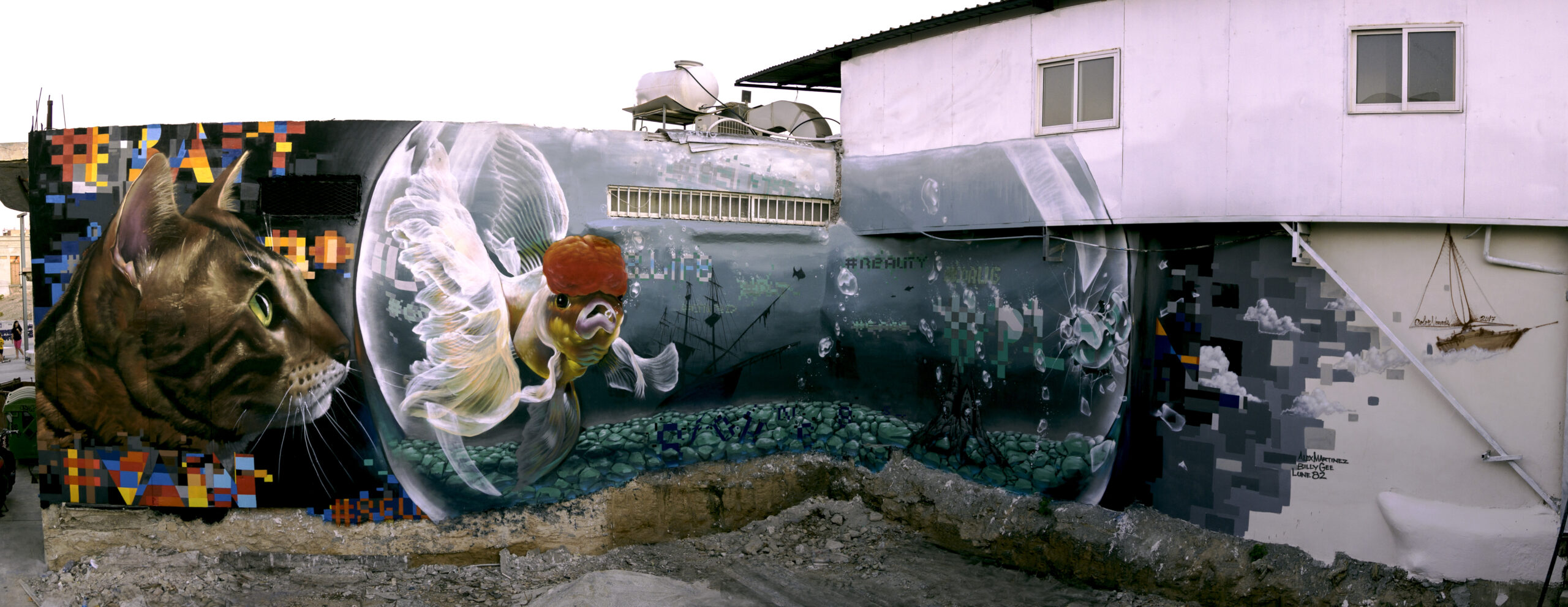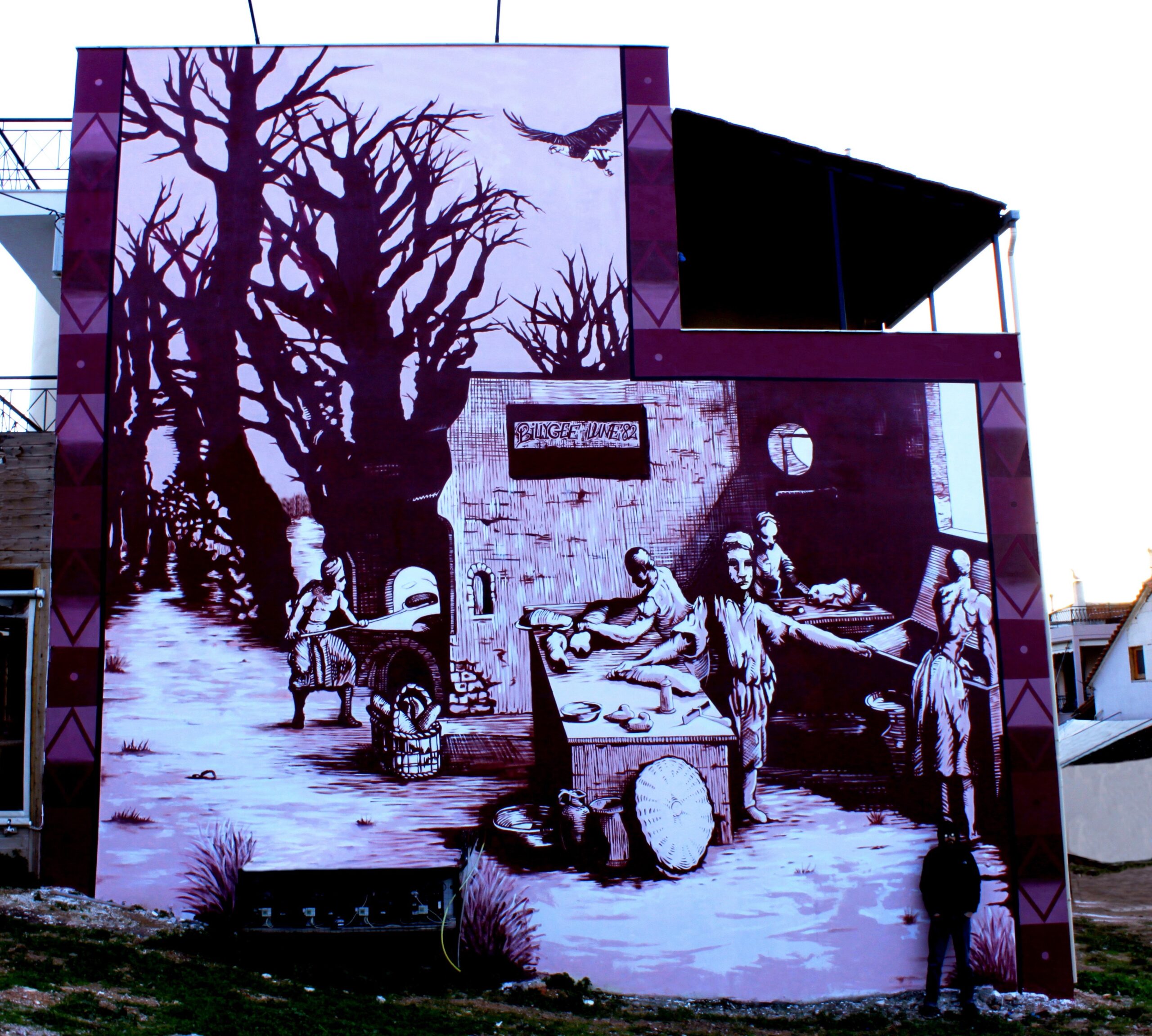 Issu d’un background graffiti fort et respecté, il fait partie de la génération qui a contribué à façonner la scène street art contemporaine athénienne. Il est également l’un des membres fondateurs du légendaire crew de graffiti athénien UDK, un collectif qui a largement participé à définir l’identité visuelle des murs de la ville depuis la fin des années 1990.