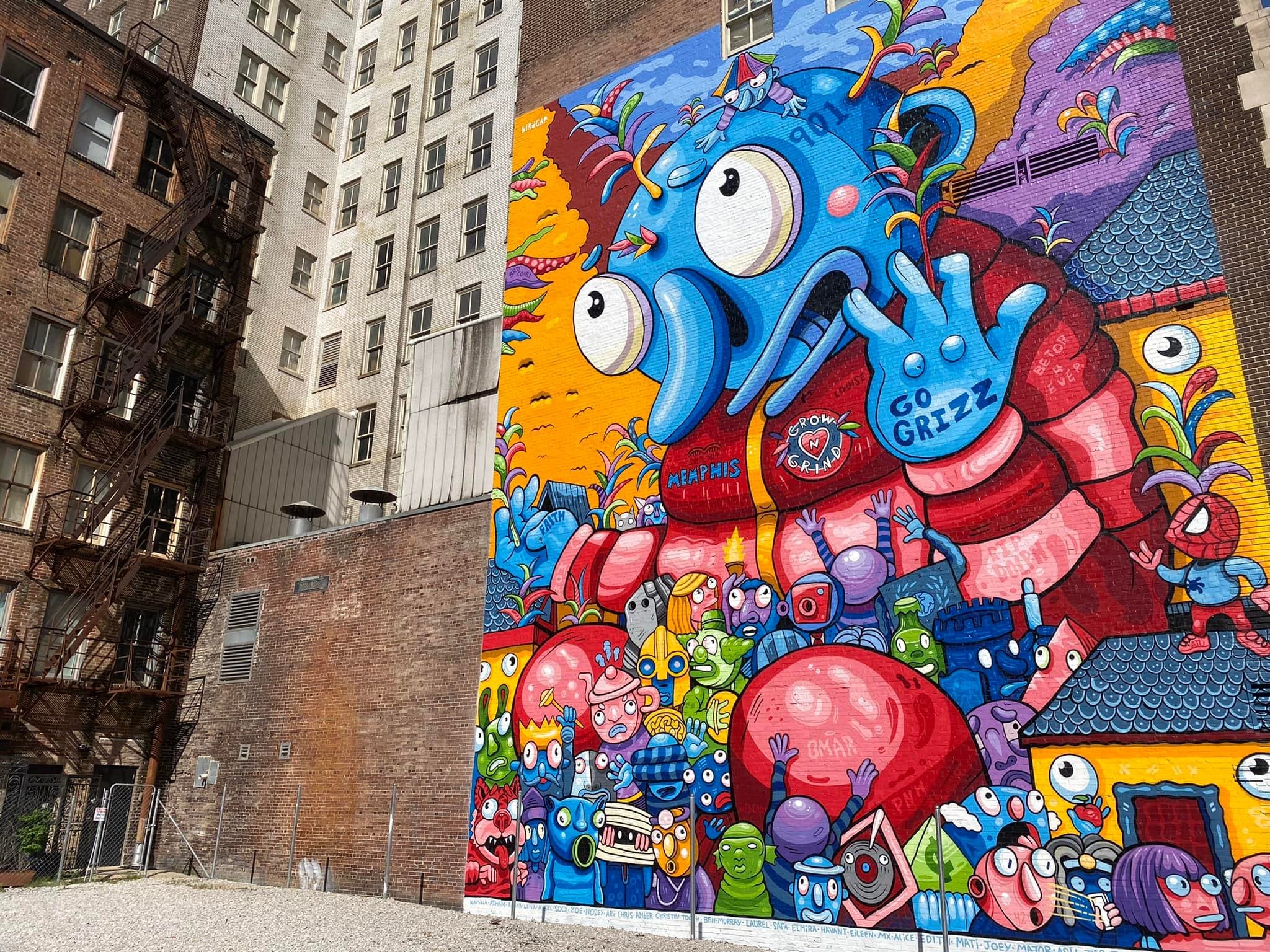 Aujourd’hui basé à Memphis, il réalise des fresques et expose à l’international, transformant les paysages urbains en univers poétiques où folklore, humour et réflexion se rencontrent.