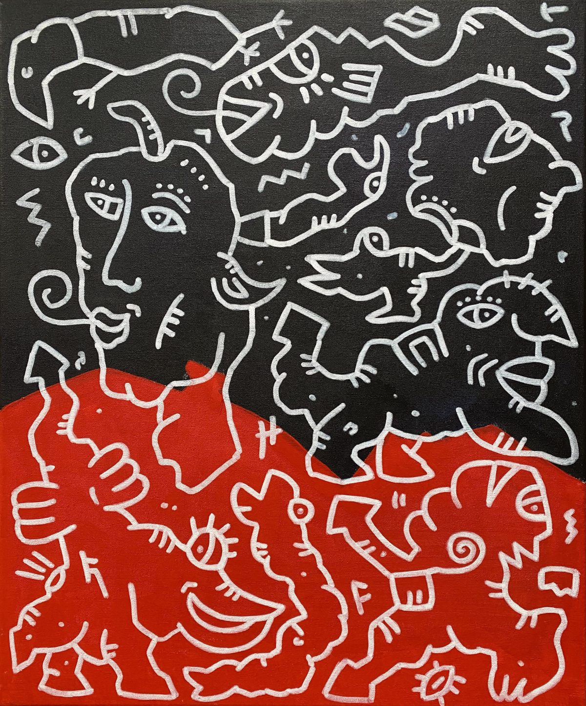 Based between Paris, Brittany, and London, Block513 has developed a unique graphic universe through his signature characters, the “Worms.” Inspired by Celtic and Scandinavian folklore, these playful, mischievous figures blur the line between human, animal, and fantasy.