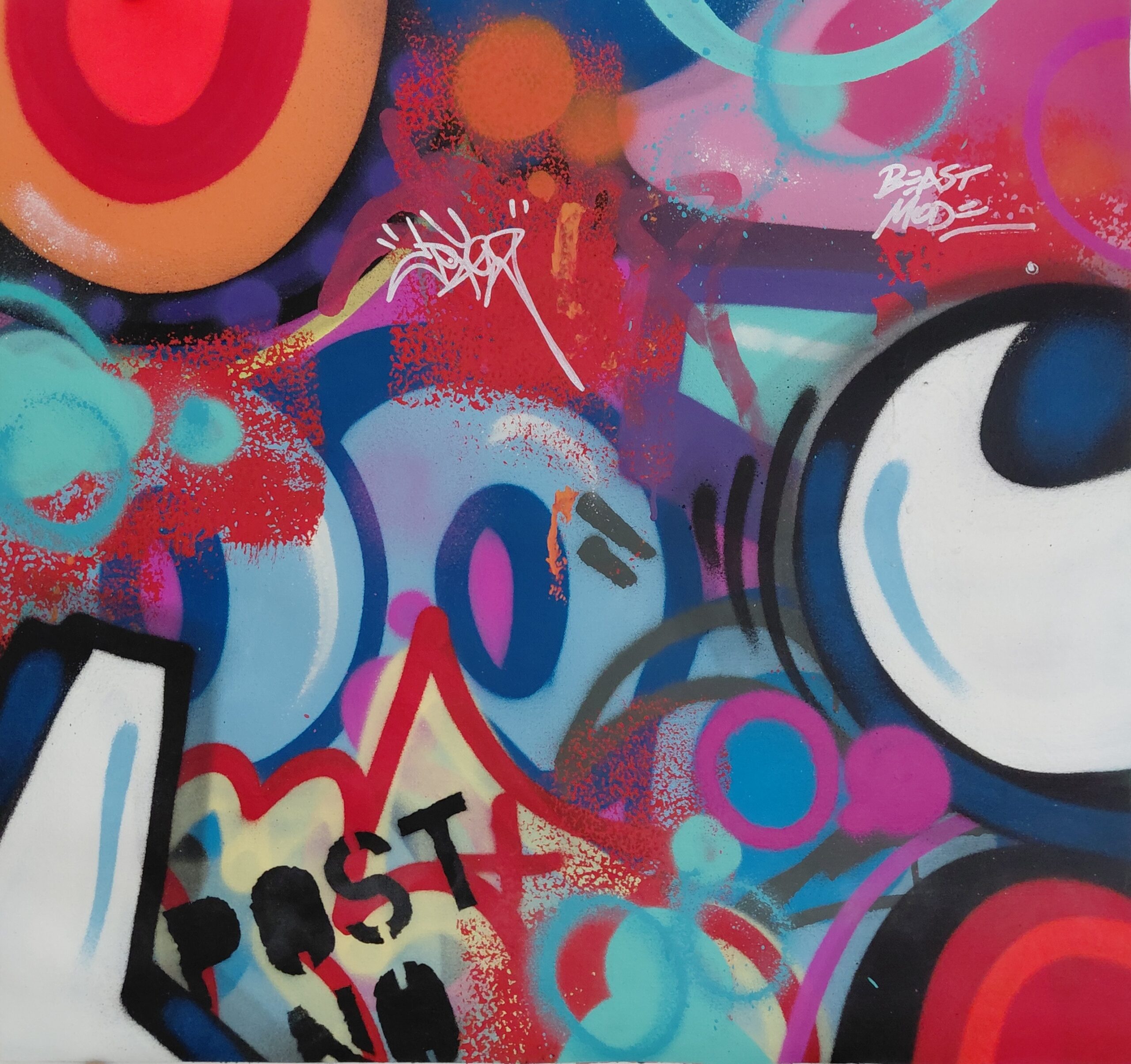 Si la rue demeure son terrain d’expression originel, le travail d’atelier occupe aujourd’hui une place centrale dans sa pratique. Ses œuvres sur toile conservent l’énergie, la spontanéité et la force chromatique du graffiti classique, tout en s’inscrivant pleinement dans le marché de l’art contemporain.