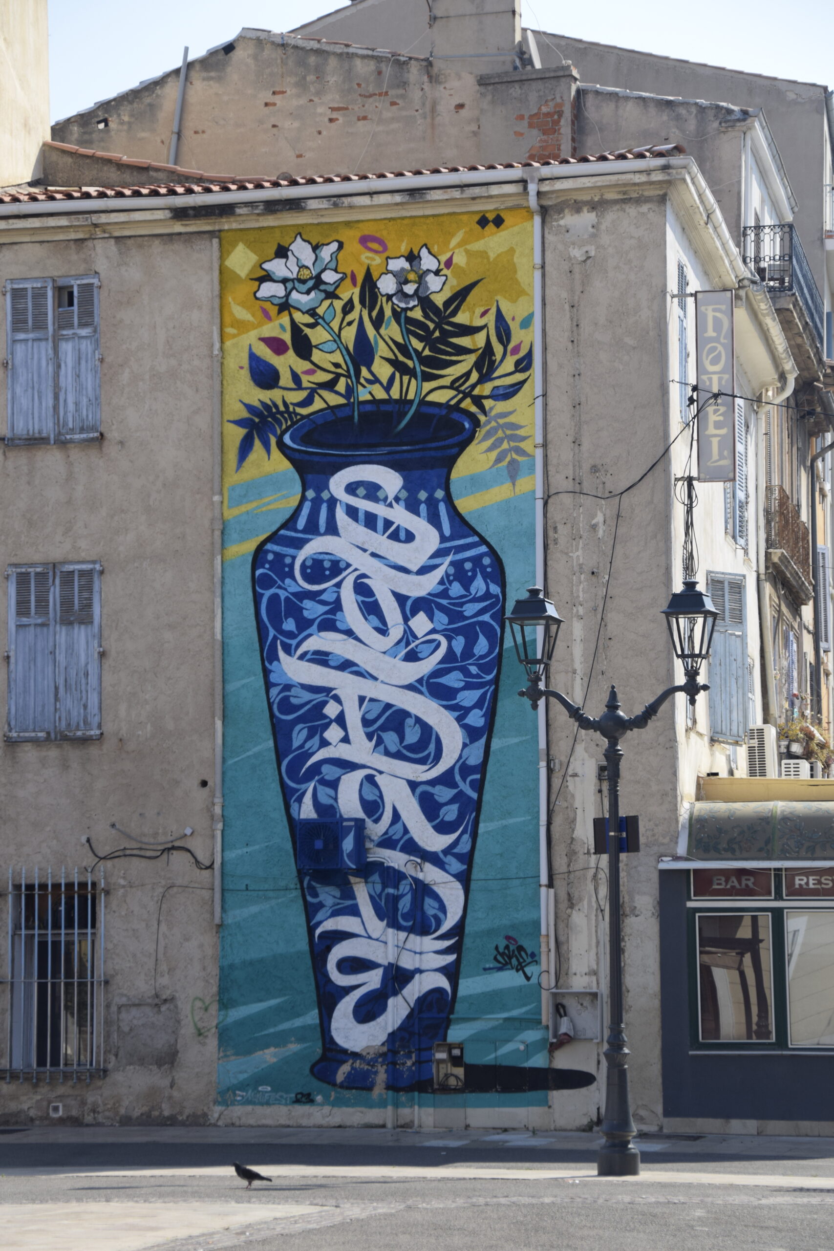 , né en 1987, est un artiste calligraphe et muraliste basé à Marseille. Issu du graffiti, il place la lettre et la calligraphie au cœur de sa démarche artistique, explorant les mouvements, les structures et les significations pour les réinventer comme matière première.
