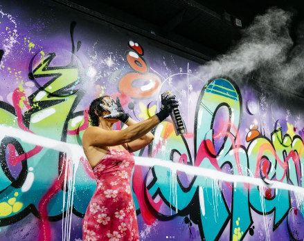 Cette double formation culture graffiti et formation académique lui permet d’inscrire sa pratique dans un dialogue constant entre rue et institution, entre spontanéité et réflexion conceptuelle.
