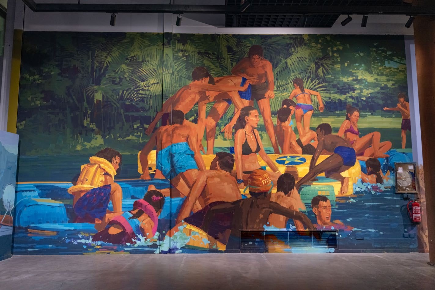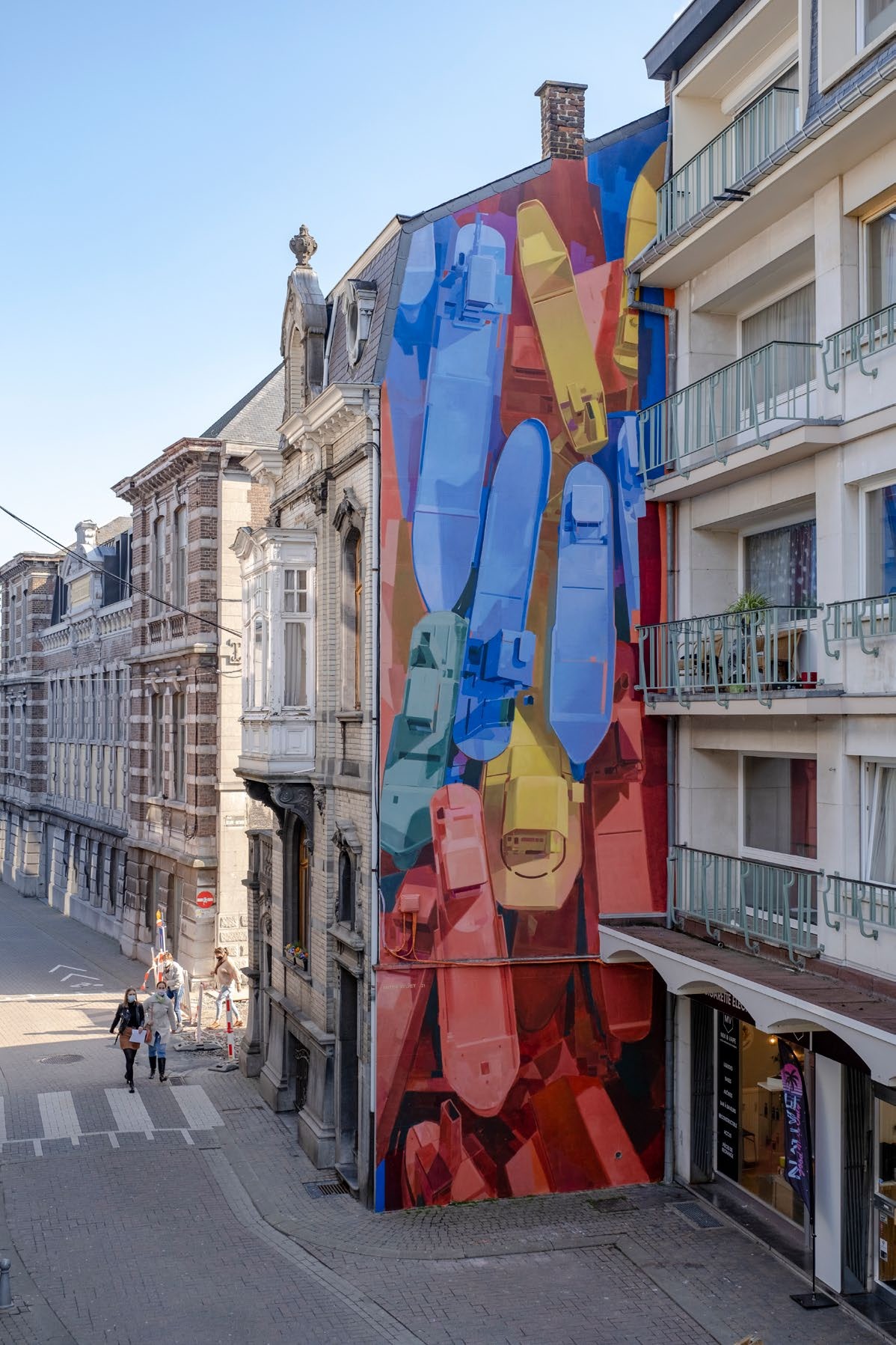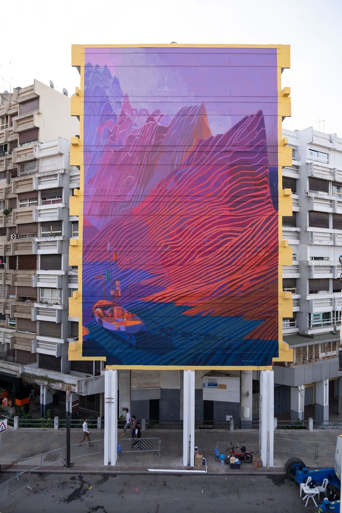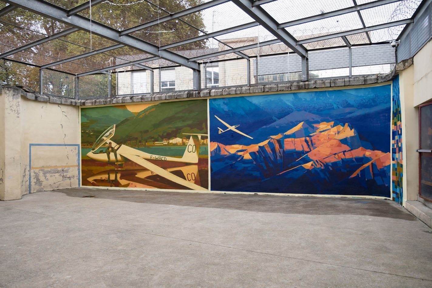 Parallèlement à son travail sur toile, il réalise également des fresques murales dans lesquelles il transpose cette même approche picturale, mêlant héritage du graffiti, sens de la composition et recherche narrative.