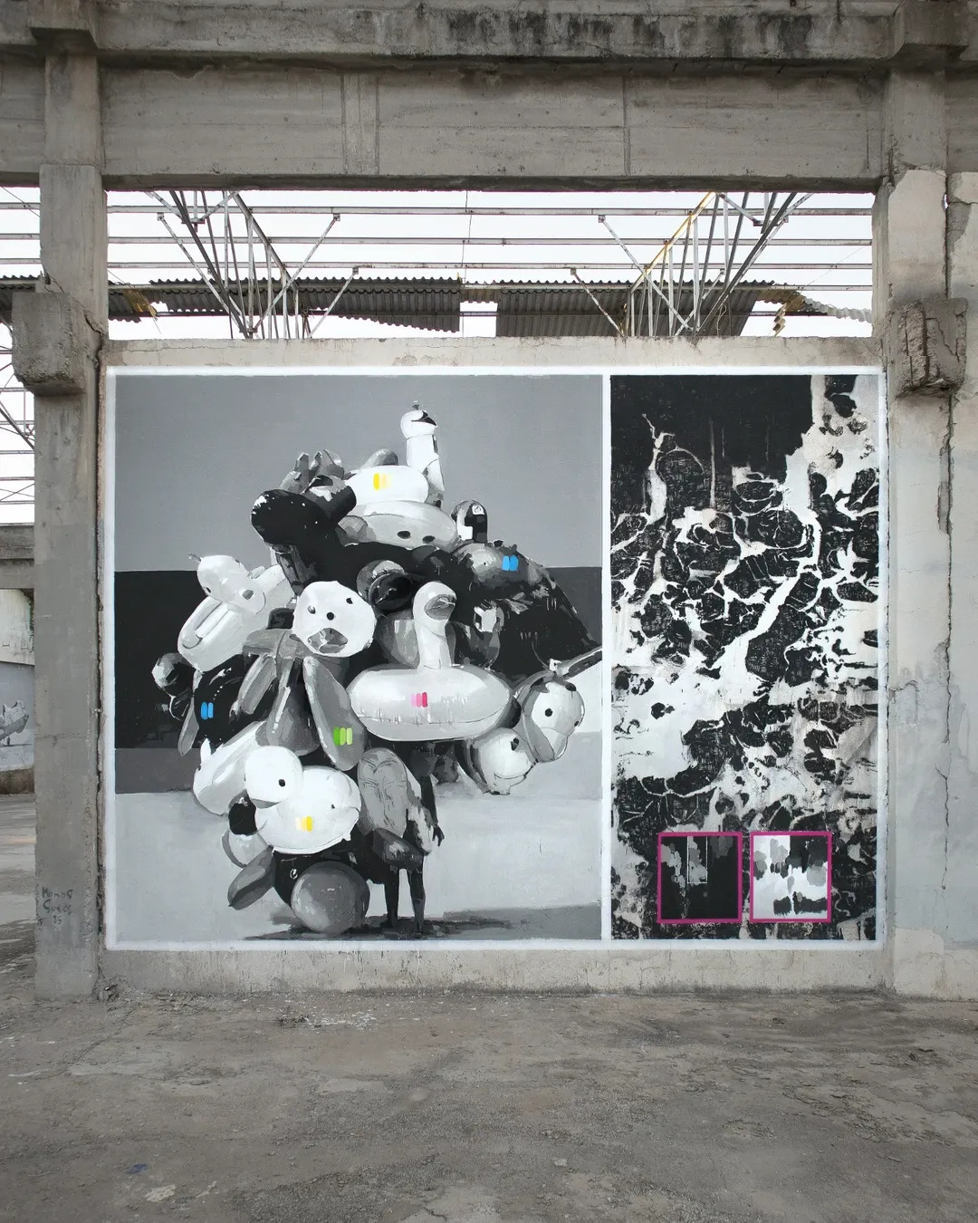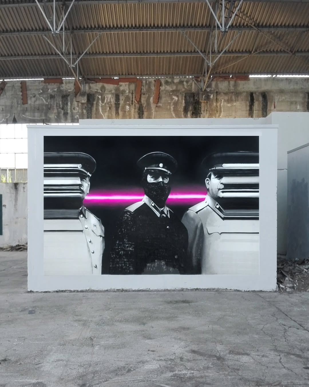 Monos Sotos s’investit dans des projets d’art urbain de grande envergure qui réactivent des lieux industriels abandonnés, transformant des usines ou des tunnels en galeries à ciel ouvert. En juin 2023, il organise avec plus de 20 artistes le projet Peramo, réunissant plus de 70 murals sur une surface de 4000 m² dans une ancienne usine près d’Athènes — une intervention qui illustre sa démarche collective et son engagement envers l’art dans l’espace public.