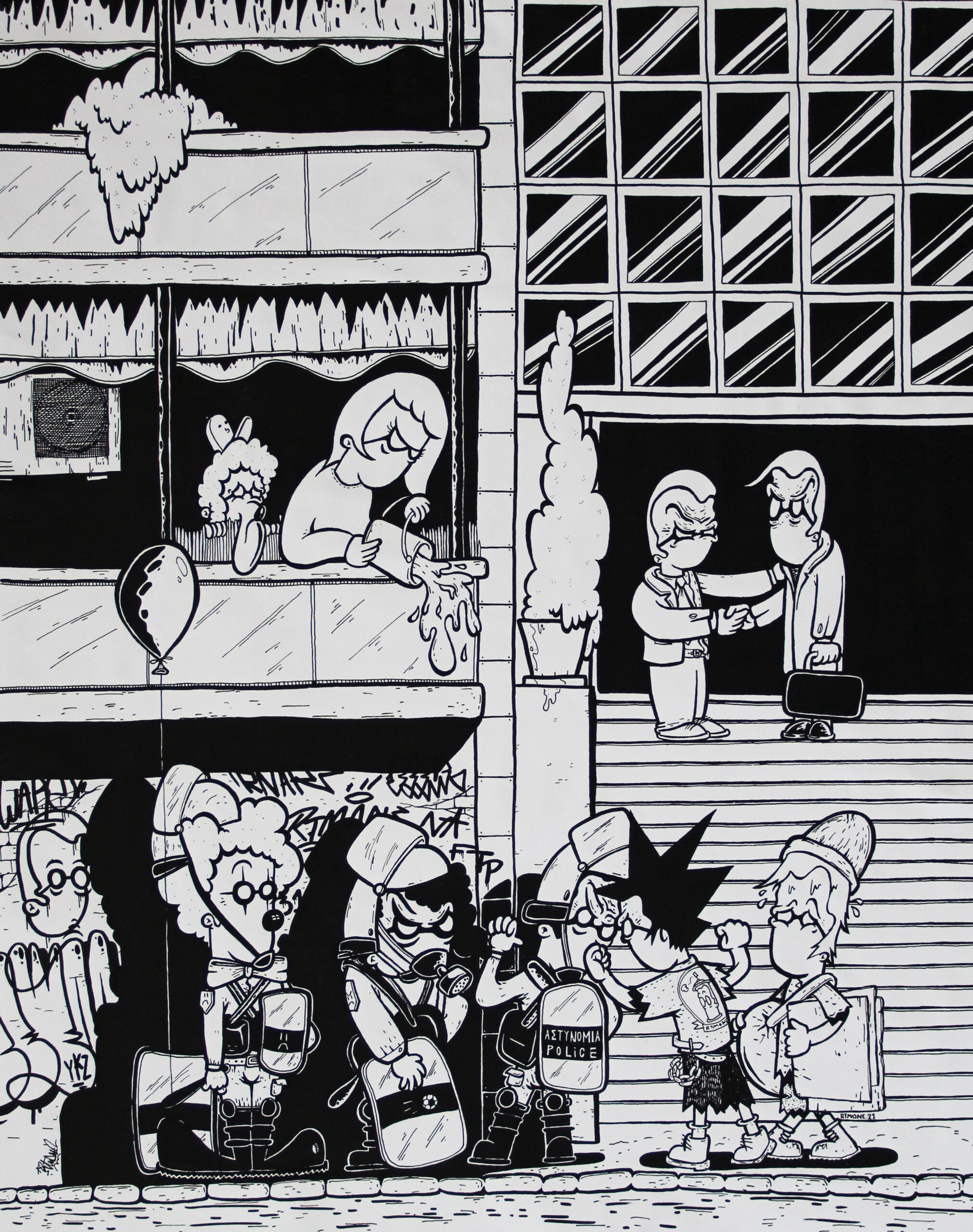 RTMone is an architect engineer who graduated from the University of Thessaly. He has been actively involved in graffiti and street art since 1999. Since 2011, he has lived in Athens, where he works professionally with illustrations and murals while simultaneously organizing graffiti and Doodle Art workshops.