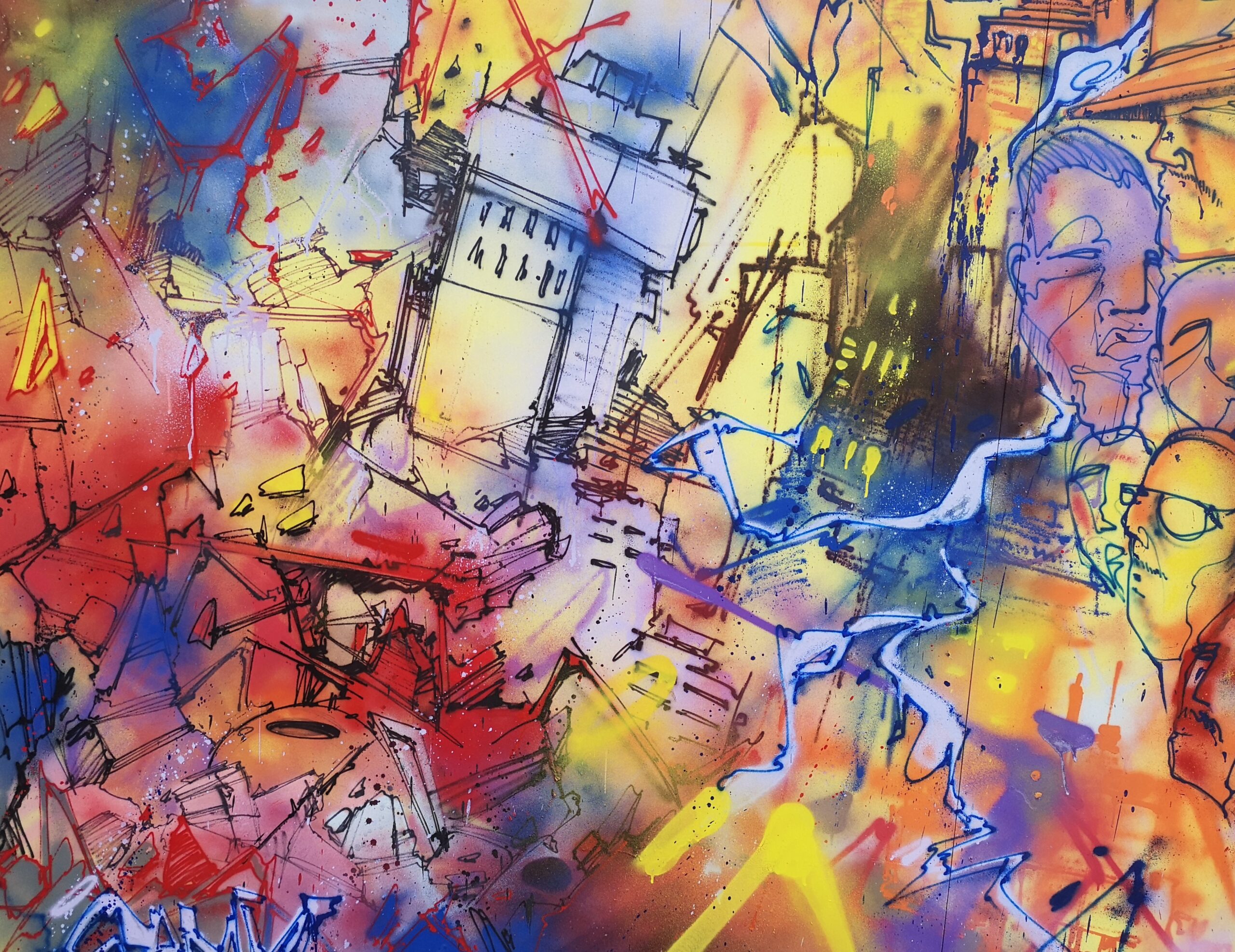 Shure explore cette dynamique à travers une abstraction assumée et un langage visuel puissant, capturant les tensions et les rythmes de l’environnement urbain. Son travail questionne les relations entre architecture, culture et population, tout en affirmant une présence forte dans le dialogue entre street art et art contemporain.