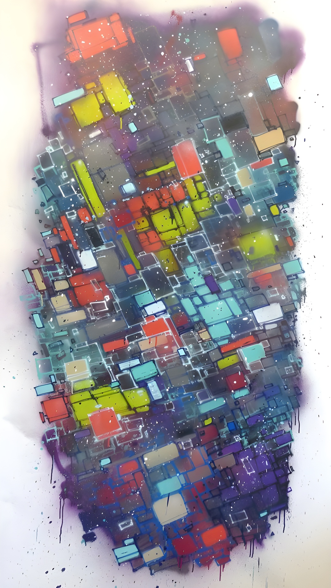 Au fil de sa carrière, Shure a développé une esthétique personnelle qui interroge les phénomènes d’urbanisation massive et la transformation constante de la ville. En jouant avec les codes architecturaux, il crée des compositions où formes géométriques, accumulations et assemblages s’entremêlent pour proposer une vision de la ville en mouvement. Cette approche traduit non seulement l’énergie urbaine mais aussi ses aspects oppressants, offrant une cartographie expressive et agitée de l’espace contemporain.