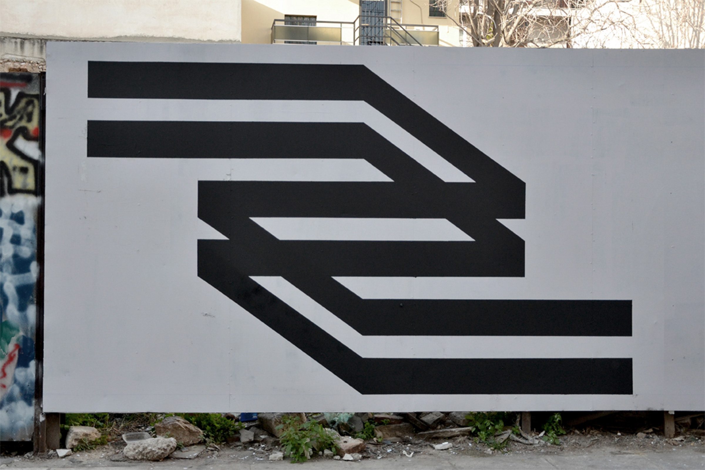 Simek aka Christos Tzaferos is a visual artist and graphic designer based in Athens, Greece. Born 1985, he studied graphic design in Athens and his work is characterised by an interest in geometry, parallel lines, shapes, patterns and glitches. He creates public and interior murals and paintings on canvas, paper, wood and metal installations.
