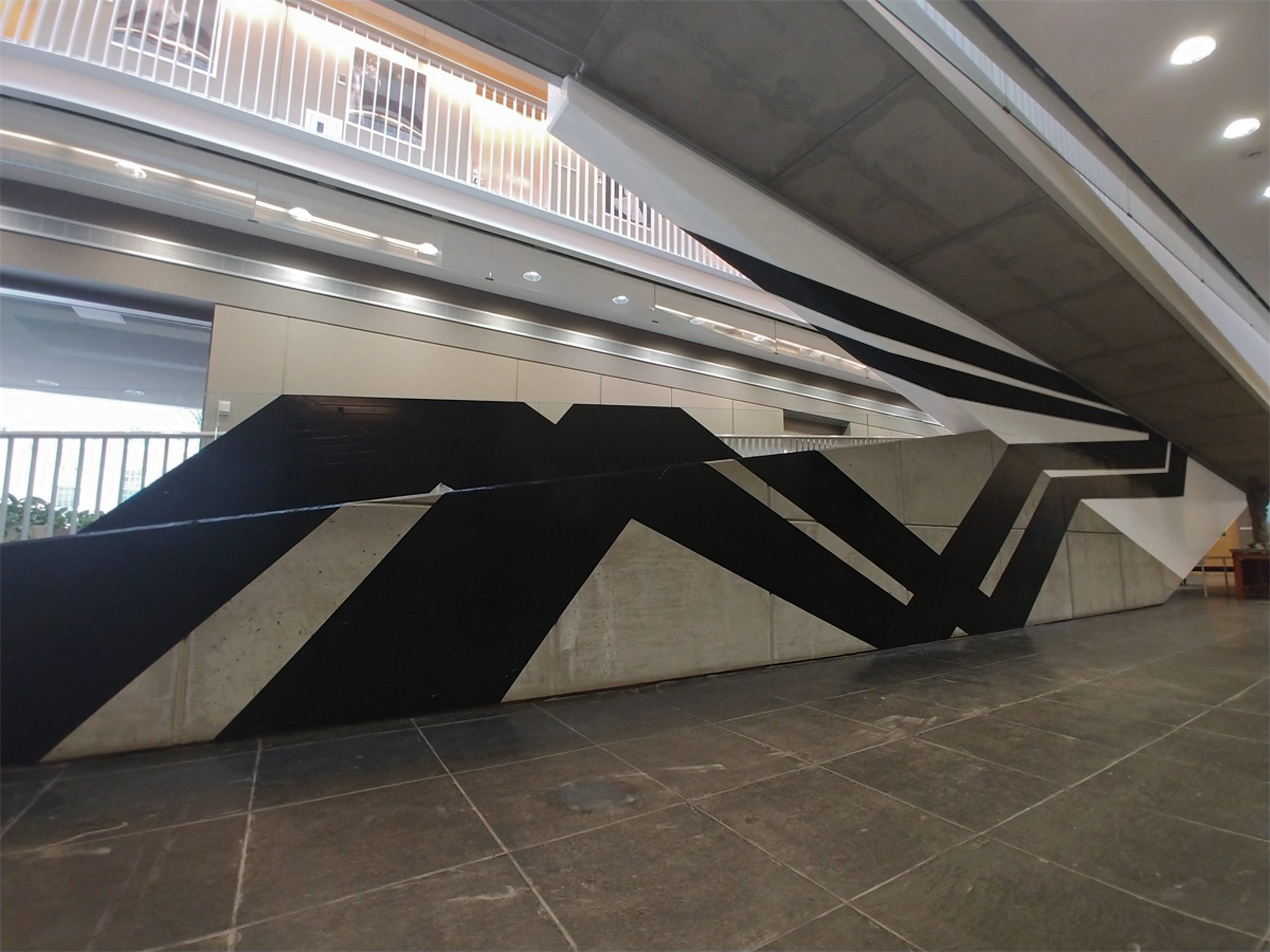 His work is influenced by architecture and the materials displayed in the space. He often works in monochrome and combines his artwork with various hues of raw materials, he also enjoys working with color. His artwork combines architecture and graphic design to create geometric compositions, patterns and motifs.