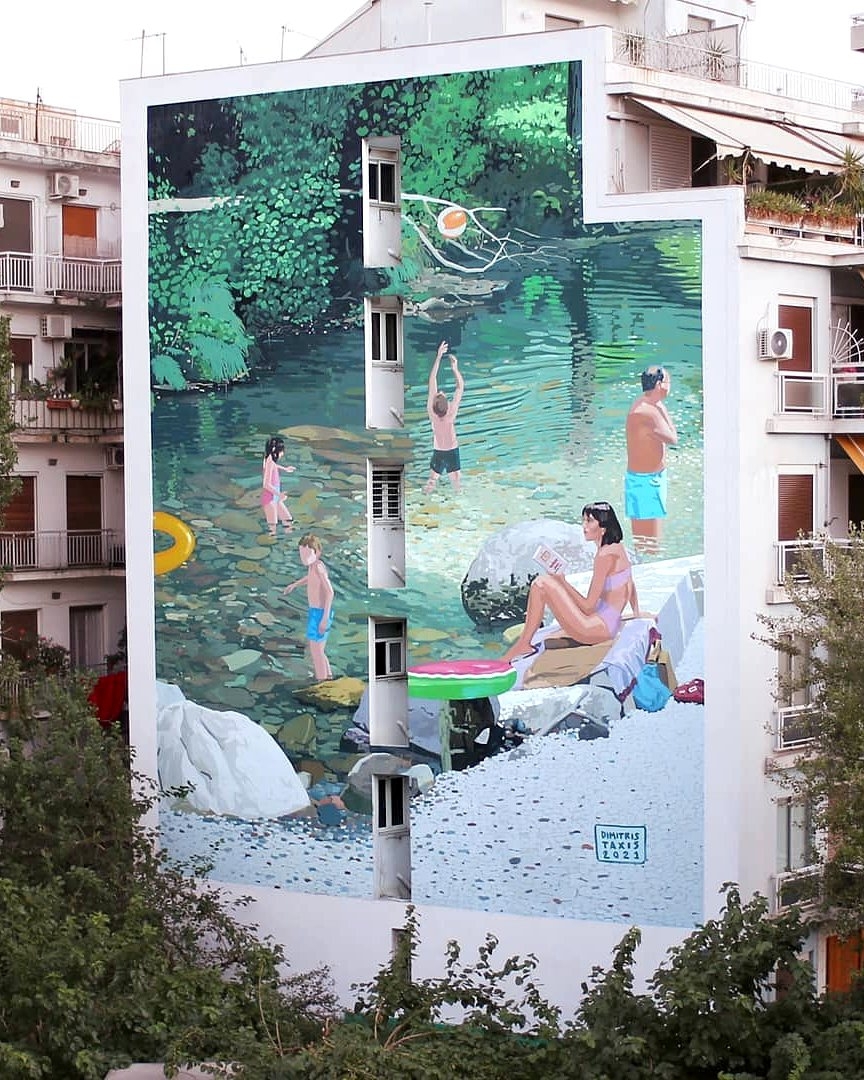 Aujourd’hui, Dimitris Trimintzios (Taxis) s’impose comme une voix forte de la scène urbaine et figurative contemporaine, à la croisée du street art, de la peinture académique et du récit graphique.