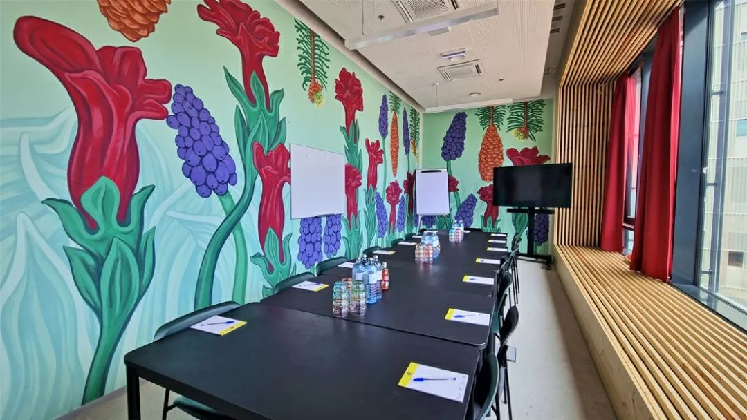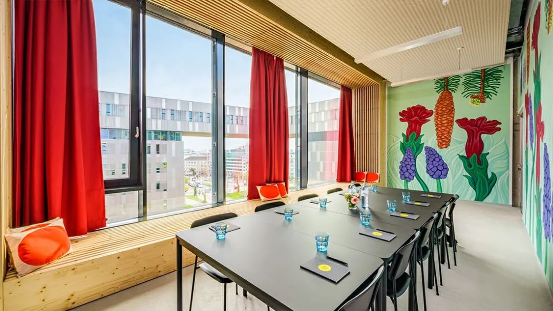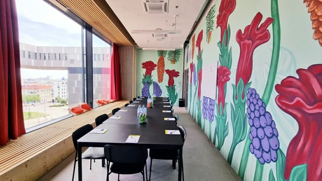 Décoration de la salle de reunion de l’auberge de jeunesse Jo and Joe de Vienne en Autriche par l’artiste brésilien Dinho Bento